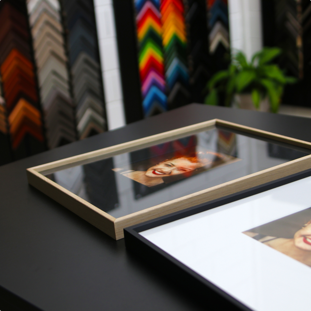 En bois ou en aluminium, avec ou sans passe-partout, verre anti-reflet : composez votre cadre sur mesure en ligne et soyez livré-e à domicile.
