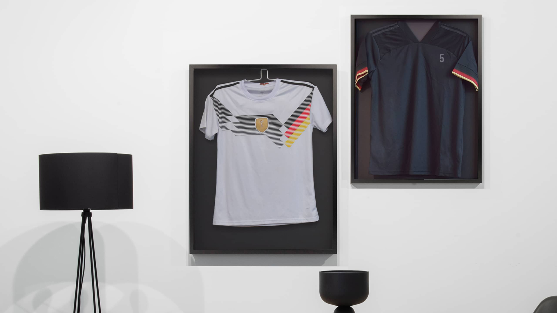 Fabriqué en Allemagne, la Frame Box allie design élégant et protection durable. L'objet parfait pour transformer un maillot de sport en véritable objet de décoration.